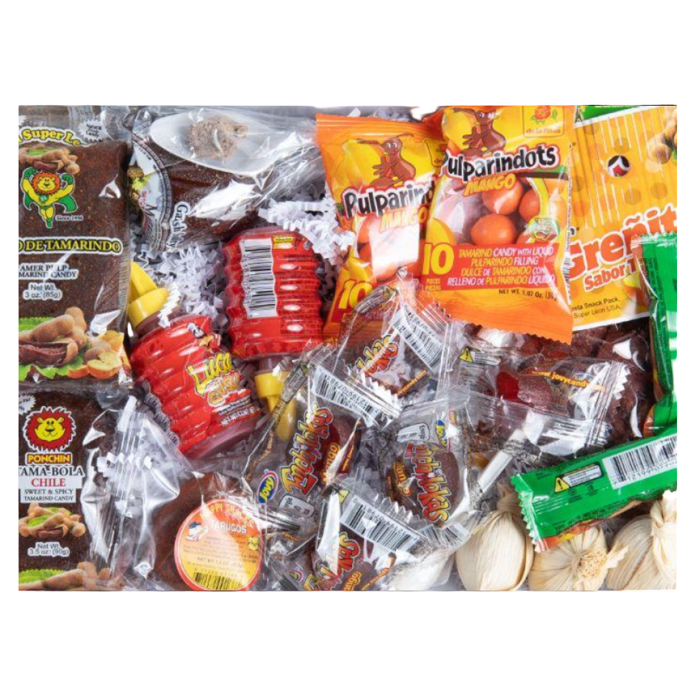 Introducing the "Fiesta Dulce Tower" - a vibrant and tantalizing display of Mexican candy that will ignite your taste buds and transport you to the colorful streets of Mexico City. This towering masterpiece is a celebration of sweet, spicy, and tangy flavors, featuring an assortment of traditional Mexican treats carefully curated to delight every palate.